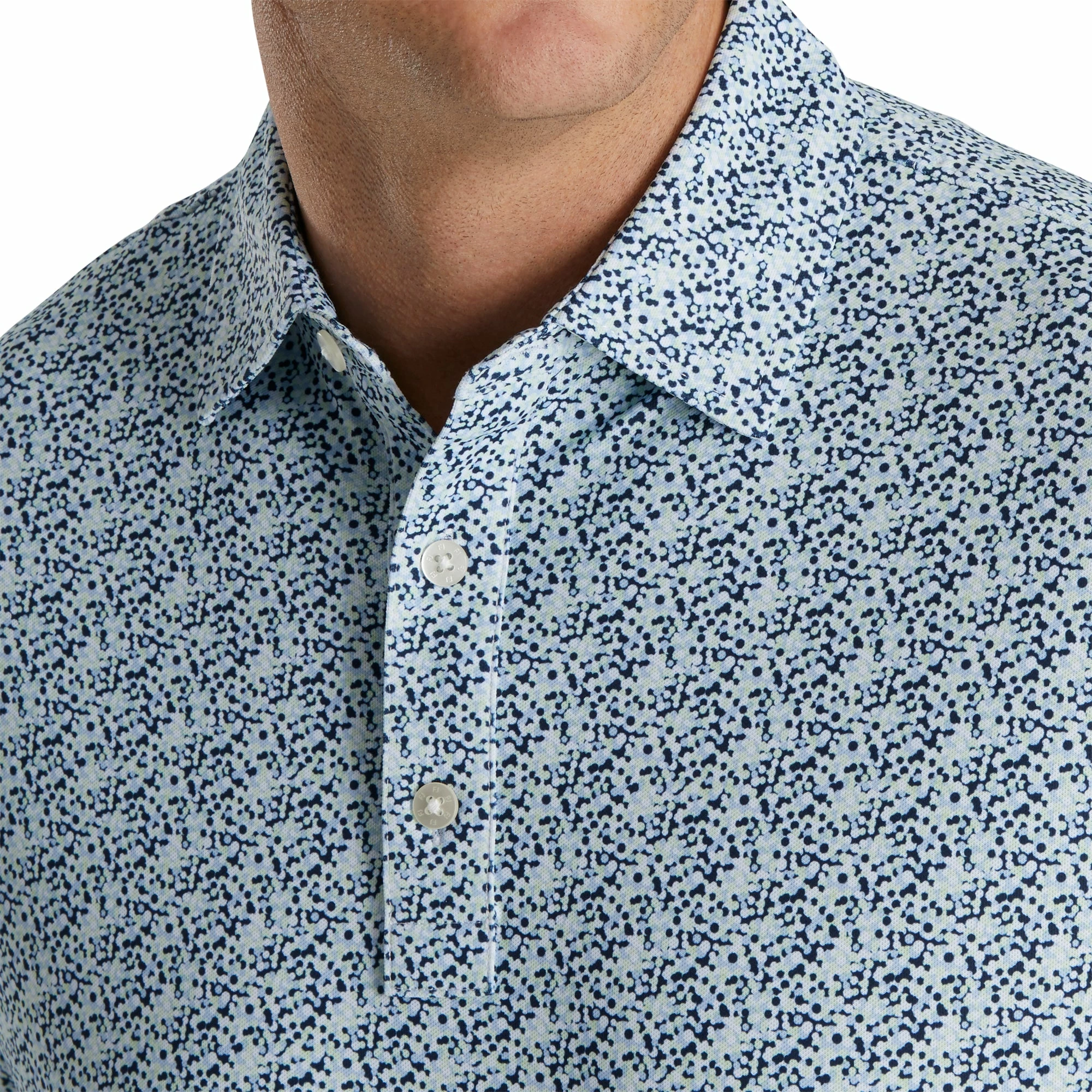 Get comfort, style and performance with the FootJoy Pique Confetti Print Golf Polo. This polo has been built with the FootJoy Exclusive ProDry fabric that provides superior moisture control by wicking water away quickly while also providing a four-way stretch that will keep you dry and comfortable throughout the round. There is an anti-microbial technology that prevents odor build up to keep you smelling fresh and the extended back shirt tail makes tucking it in a breeze. The confetti styled print pattern on this polo will provide golfers with tons of style both on and off the course.