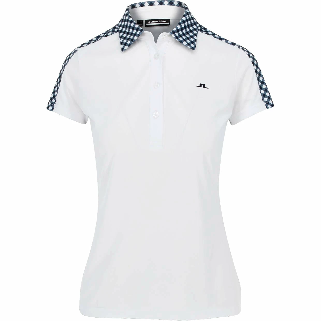 The J. Lindeberg Cara Golf Polo is made with TX Jersey fabric that is fast drying, moisture wicking, and has four-way stretch for high comfort all day long. The polo is designed with a solid color at front and a print on the back and collar. It also features a four-button placket and JL logo at chest.