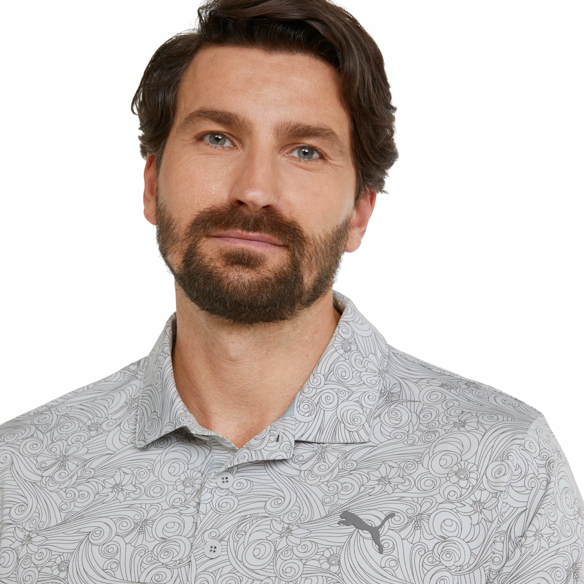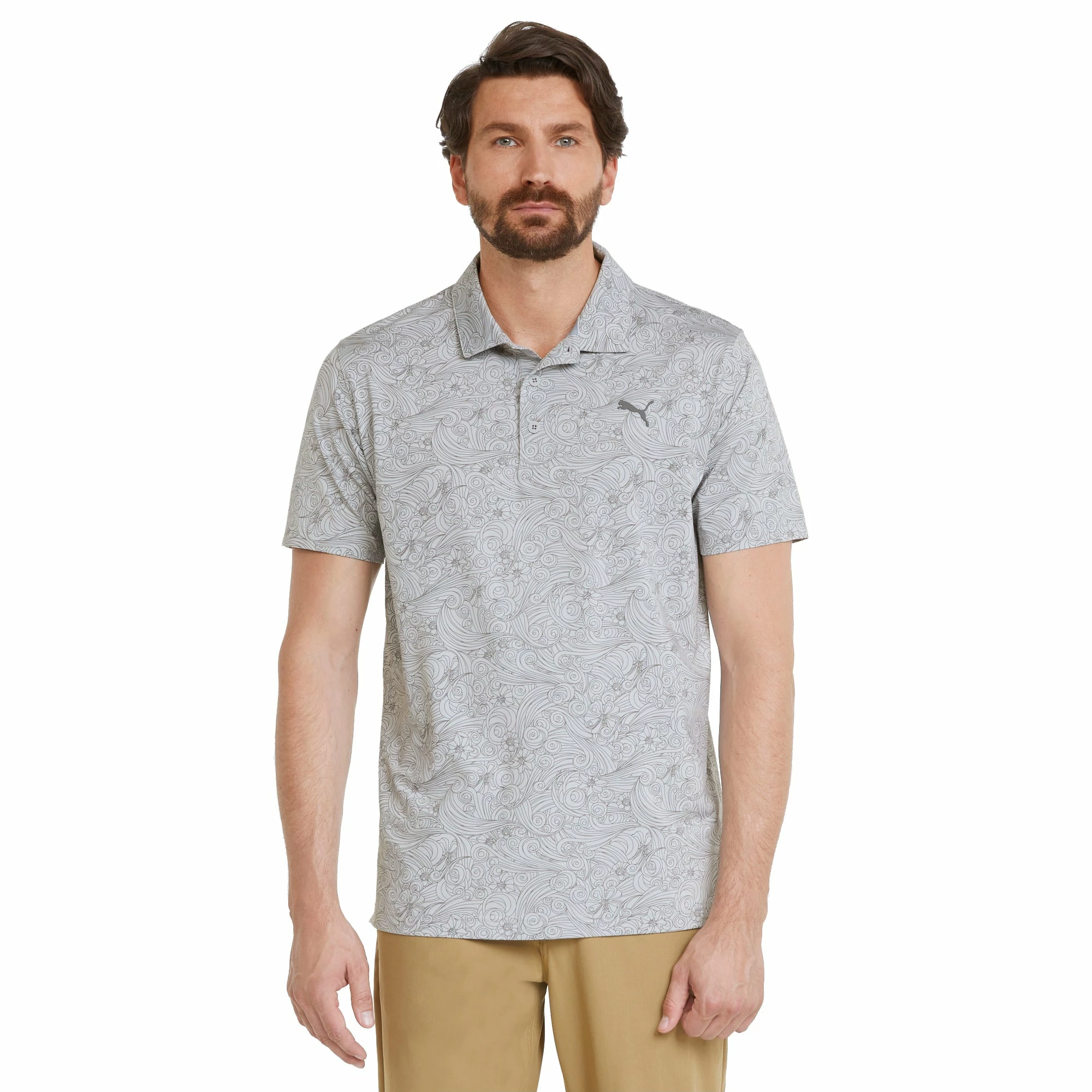 Built to pay homage to golfs first Major of the year comes the Puma MATTR Gust O Wind Golf Polo. The Gust O Wind is built with Puma MATTR fabric that is moisture wicking and quick drying to pull sweat from the body and keep you dry and comfortable throughout the round. The four-way stretch material moves with you for added comfort and the Cat logo on the left chest combines with an all-over print that represents the flowers and wind found in Augusta, Georgia to keep you looking good on and off the golf course.